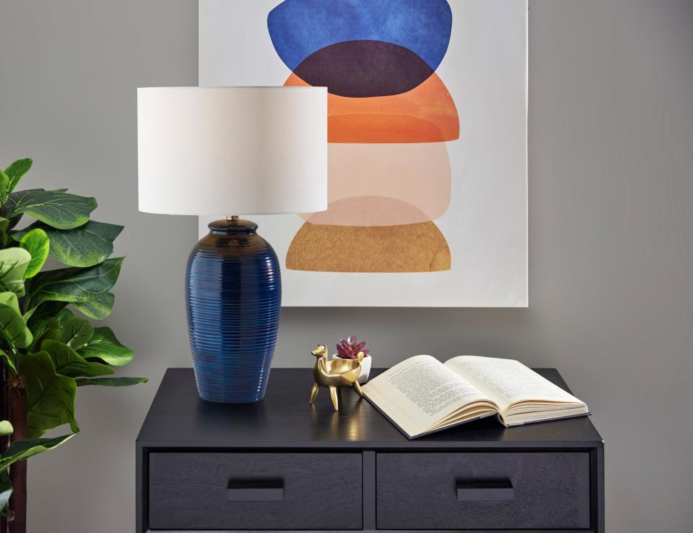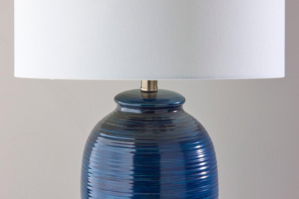 Introducing the SL3988-07 Alexis Table Lamp, a captivating blend of form and function. This lamp features a striking blue ribbed ceramic base that adds a pop of color and texture to your living space. Topped with a crisp white fabric shade, it exudes a sense of timeless elegance. Standing tall at 26.5 inches, the Alexis Table Lamp is an ideal choice for bedside tables, end tables, or desks, offering both style and illumination. With the convenient 3-Way Rotary Socket Switch, you can easily adjust the brightness to create the perfect atmosphere for any occasion. Elevate your decor with the SL3988-07 Alexis Table Lamp, a statement piece that complements a variety of interior styles.