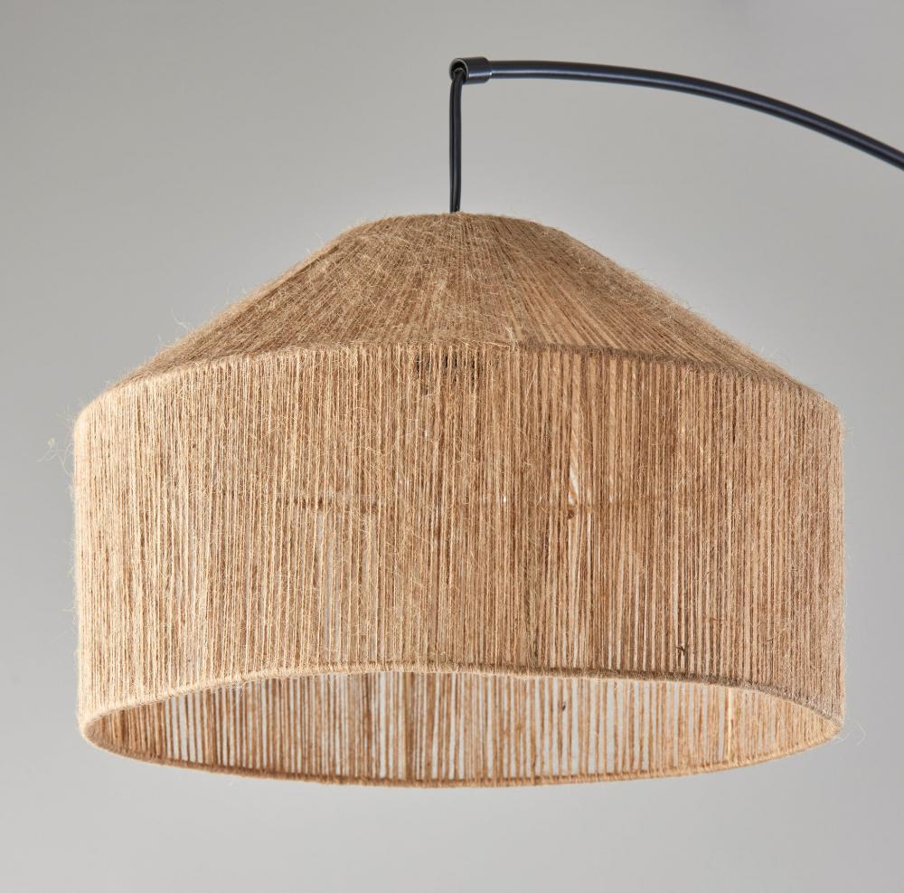 Modern Elegance: The 1637-01 Amalfi Arc Lamp boasts a sophisticated black finish and a unique dome-shaped 15" diameter rope shade, introducing a touch of contemporary sophistication to your décor