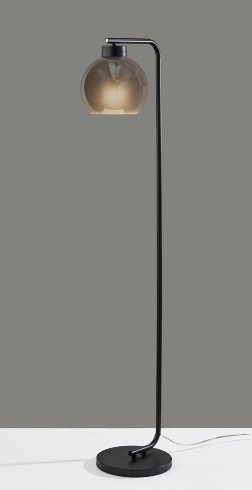 Introducing the 3898-01 Atticus Floor Lamp, a sophisticated addition to your home lighting ensemble. Finished in sleek black and featuring a globe-shaped smoked glass shade, this lamp exudes modern elegance. The glossy exterior of the shade paired with its frosted interior creates a captivating contrast, casting a soft and inviting glow. Standing tall at 59 inches, with an on/off touch switch conveniently located on the end of the pole, the Atticus Floor Lamp combines style and functionality seamlessly, making it an ideal choice for any contemporary living space.