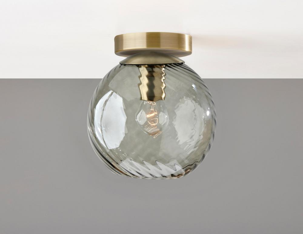 With a blend of contemporary and mid-century modern design elements, the Camden flush mount ceiling light imbues any space with warmth and light. A round base with an antique brass finish supports a 9" diameter globe shade with matching antique brass detailing. The shade is crafted of smoked glass with a delicate swirl pattern and leaves the 60W bulb visible, making a vintage Edison bulb (not included) a striking choice. The ceiling light is compatible with full-range dimmers, allowing you to adjust the brightness as needed. Complete your décor with the coordinating Camden pendant light, wall lamp, desk lamp, floor lamp, and arc lamp.
