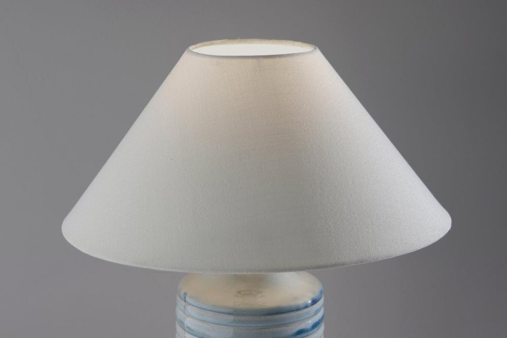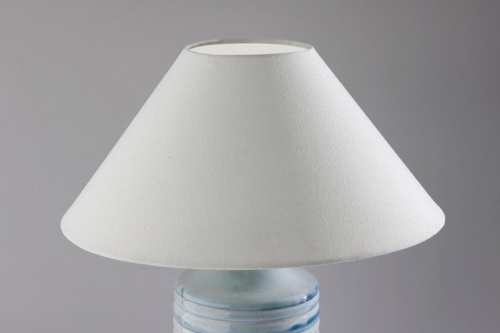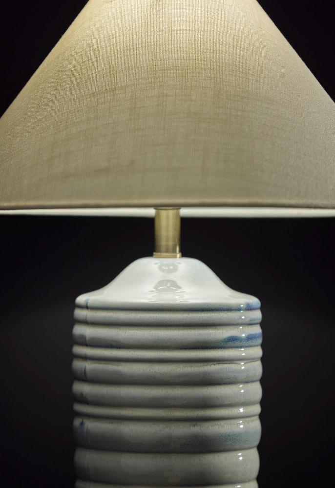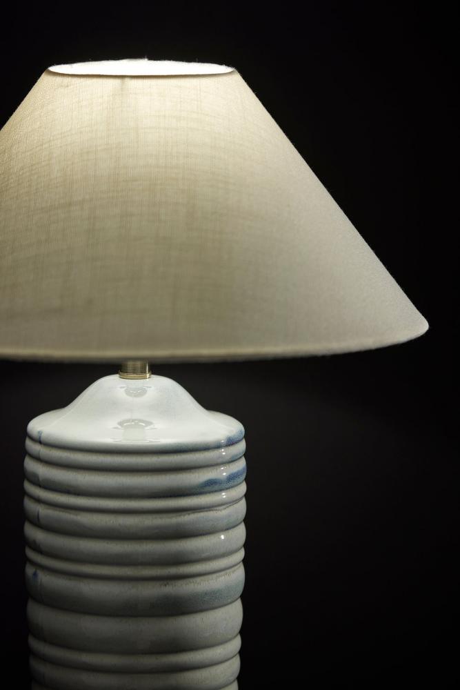 Textured Fabric Shade: The off-white tapered textured fabric shade adds depth and dimension to the lamp's design, complementing the ceramic base beautifully.