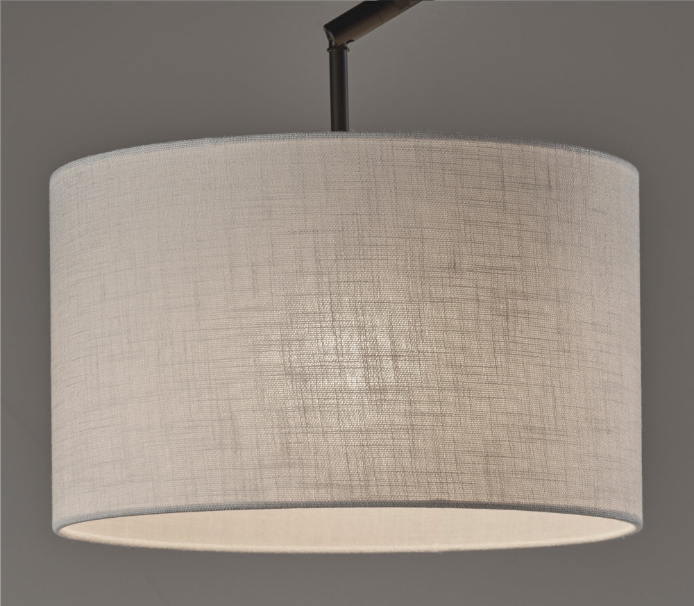 Light brown textured fabric drum shade provides a cozy and inviting glow.