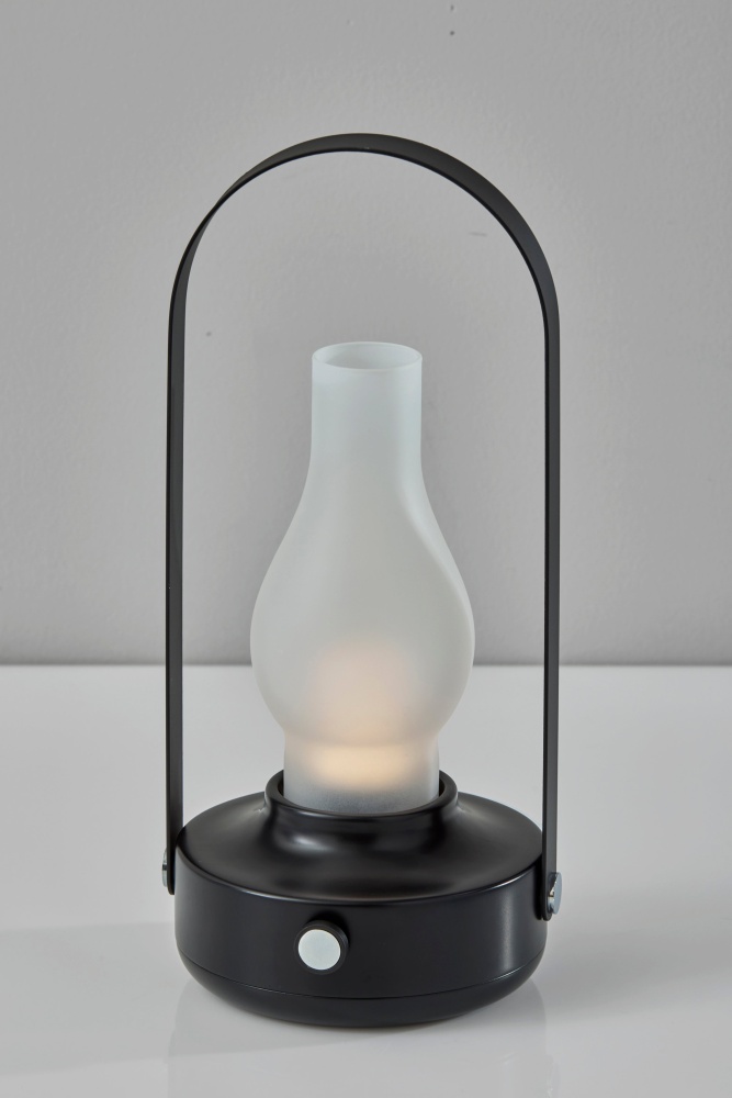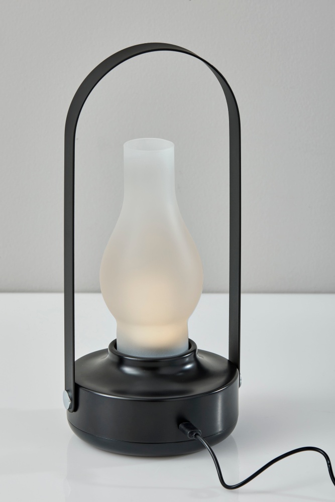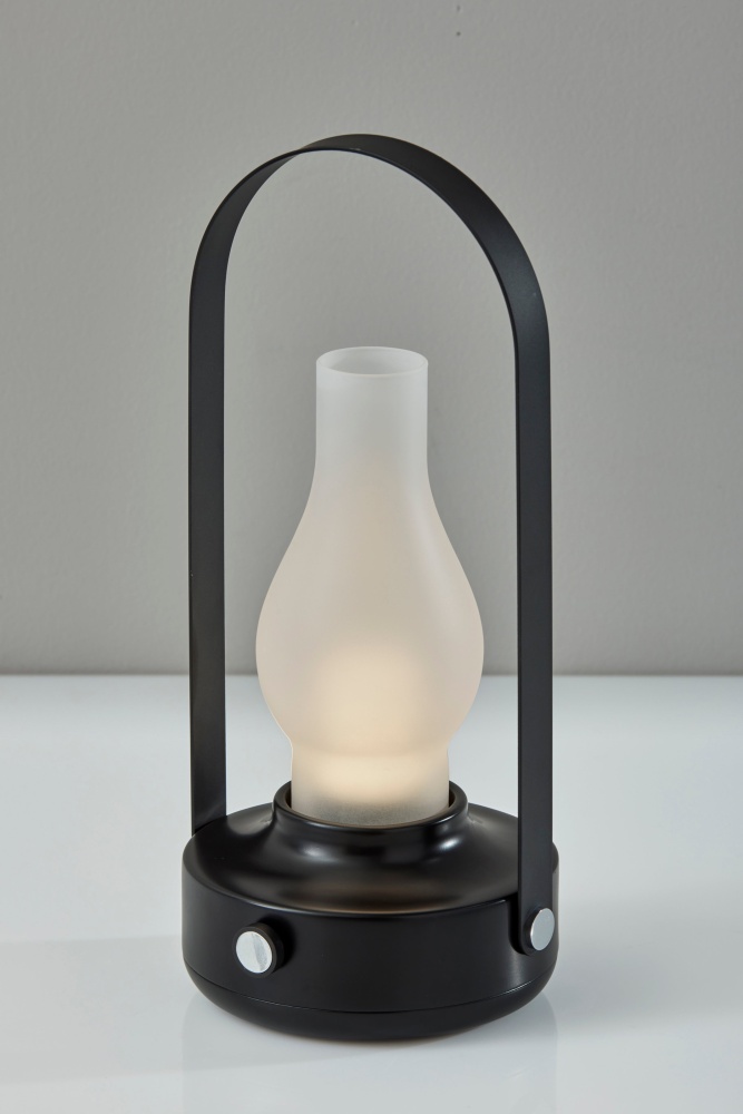 Meet the 6004-01 Eddy Cordless LED Table Lamp, a sleek and versatile lighting solution that combines contemporary design with practical functionality. Its striking black finish adds a modern touch to any space, while the frosted glass teardrop-shaped shade diffuses light beautifully for a soft and ambient glow. Standing at a height of 11.75 inches, it's the perfect size for bedside tables, desks, or outdoor settings. The black metal handle adds a stylish accent and makes it easy to carry from one place to another. Equipped with a 3 Level Touch Dimmer Switch, you can effortlessly adjust the brightness to create the perfect atmosphere for any occasion. Powered by a rechargeable 1.5W LED, this lamp offers cordless convenience, allowing you to place it anywhere without the hassle of cords or outlets. Plus, with an IPX4 location rating for outdoor use, it's designed to withstand the elements, making it suitable for both indoor and outdoor spaces.