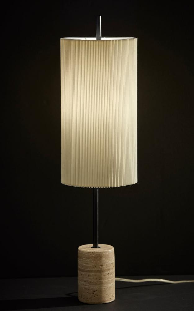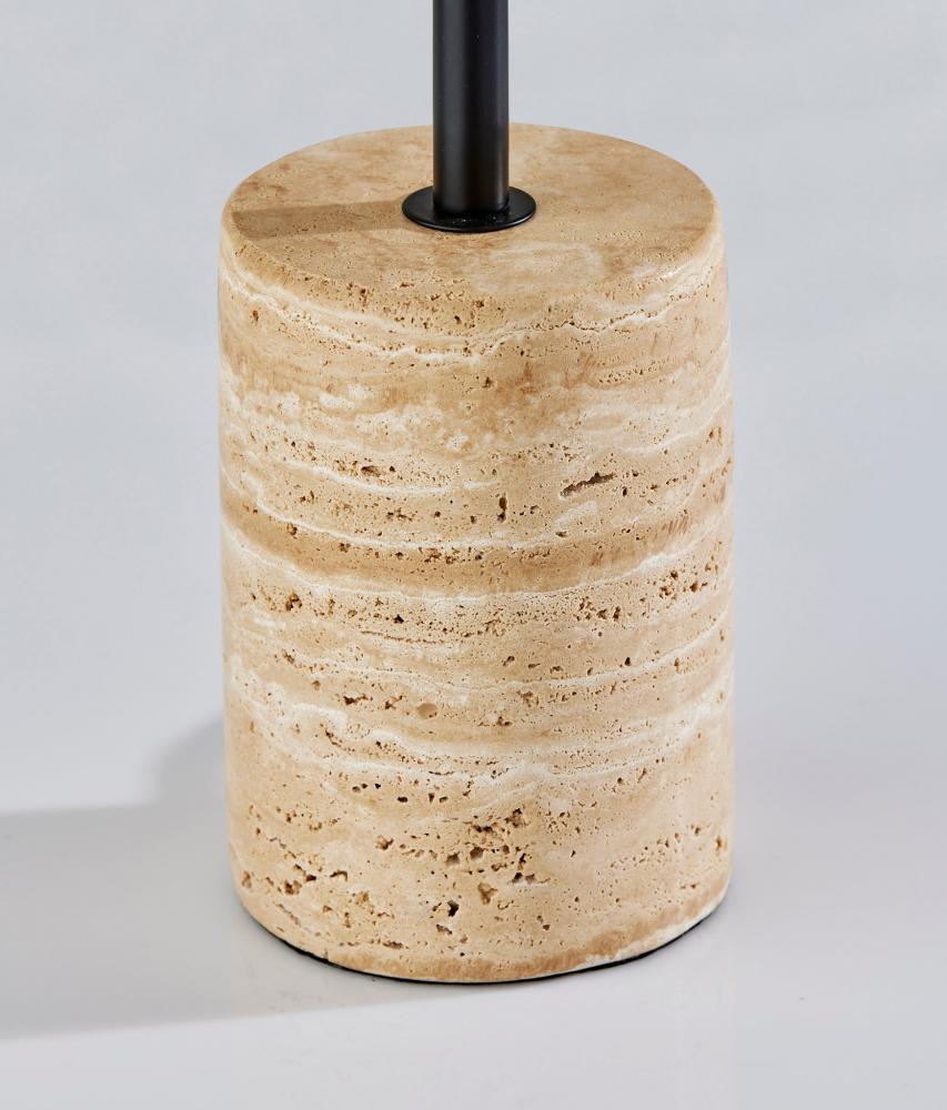Substantial Stone Base: Supported by a chunky travertine stone base, the lamp stands with presence, adding visual weight and stability to your living space.