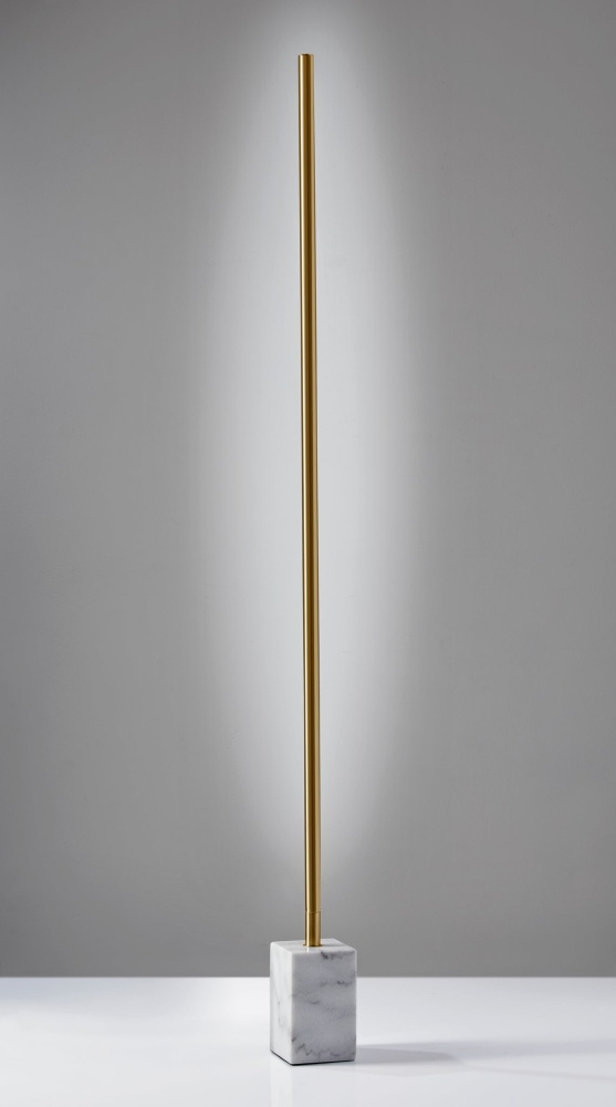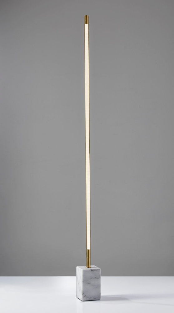 Slim and sleek, the Felix LED Wall Washer is a must-have for the contemporary, minimalist home. A long, 1" tube emits 2,500 lumens of fully dimmable light that reflects off of the wall, filling the room with a warm, ambient glow. A chunky, rectangle shaped white marble base adds a touch of elegance to this modern style. This design is available in both a brushed steel and antique brass finish. A touch dimmer switch is conveniently located at the top of the shade. This lamp is not smart outlet compatible and has a clear cord. The LED lights are integrated into the lamp and are not replaceable, but last 50,000 hours.