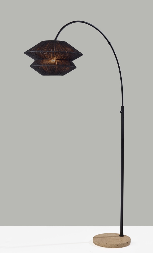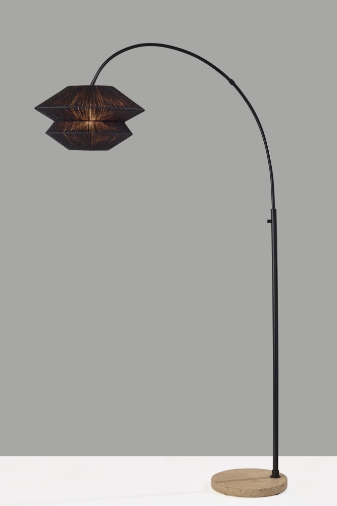 Introducing the 3871-01 Gardner Arc Lamp, a stunning blend of contemporary design and natural elements. With its sleek black finish and unique origami-shaped black rope shade, this arc lamp adds a touch of modern elegance to any space. The travertine stone base not only ensures stability but also brings a sense of organic charm to your home decor. Featuring an On/Off rotary switch conveniently located on the pole, this lamp offers both style and functionality. Elevate your interior with the Gardner Arc Lamp and illuminate your space in style.