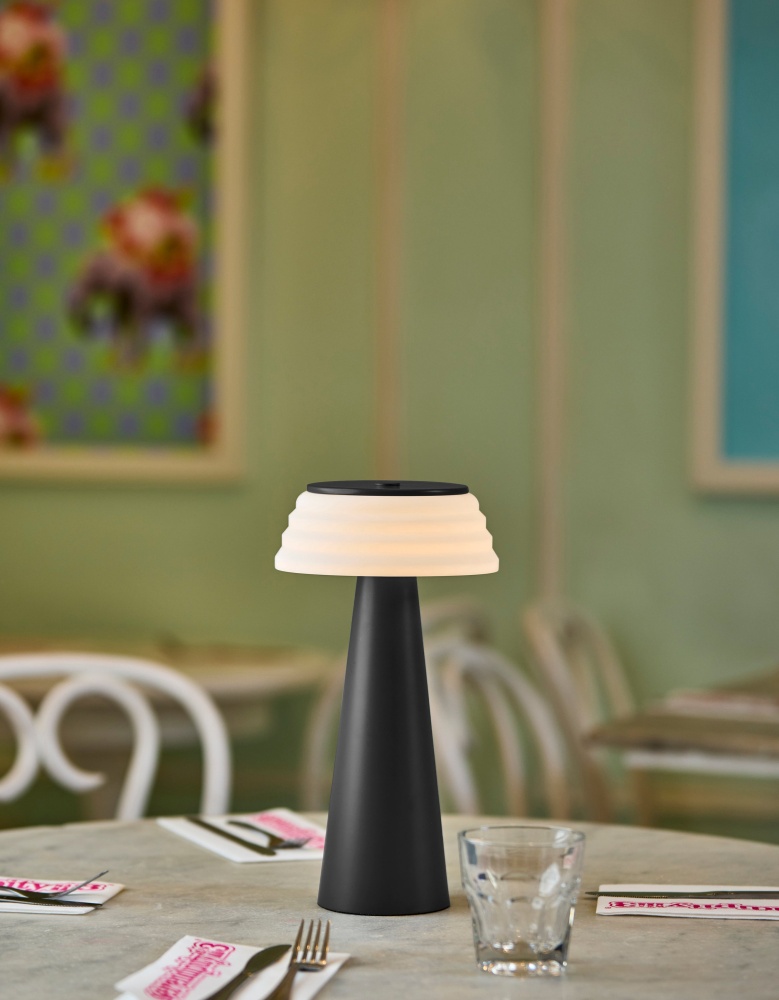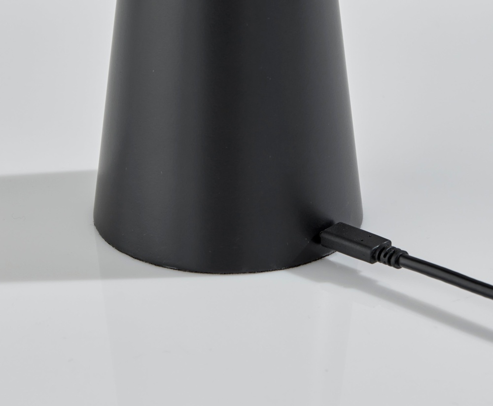 ntroducing the 3112-01 Jacky Cordless LED Table Lamp, a stylish and versatile lighting solution designed for both indoor and outdoor use. Featuring a sleek black finish and a ribbed white plastic shade, this lamp adds a touch of elegance to any space. Standing at a height of 12.5 inches, it's compact yet powerful, offering adjustable brightness levels through its 3 Level Touch Dimmer Switch. Powered by a rechargeable 1.5W LED, it provides energy-efficient and long-lasting illumination. With an IPX4 location rating for outdoor use, it's resistant to splashing water, making it ideal for patios, decks, and other covered outdoor areas. Plus, its portable and rechargeable design offers convenience and flexibility wherever you need it.