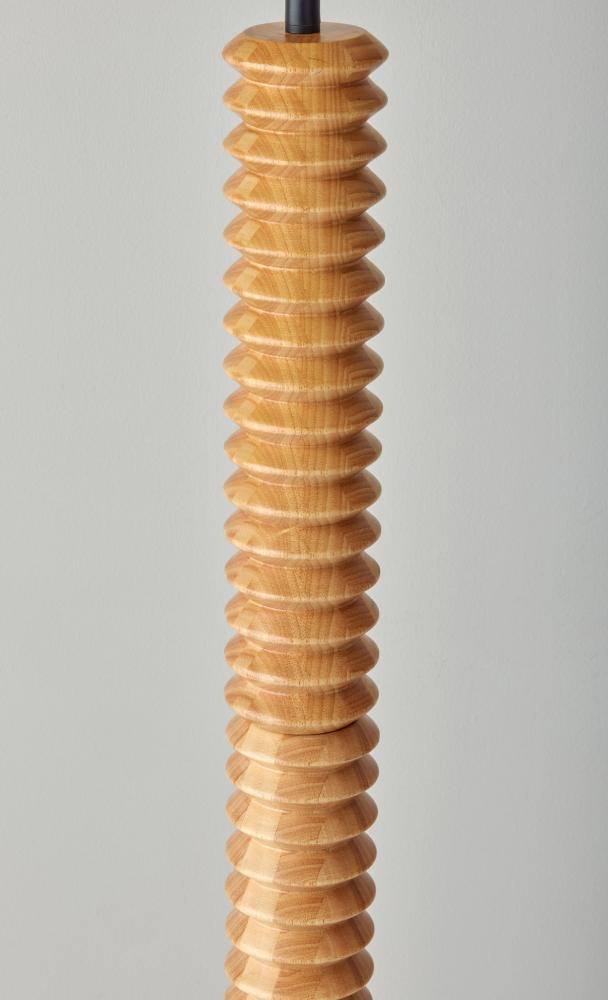 With a bold silhouette and stylish blend of materials, the Judith floor lamp is the perfect accompaniment to contemporary or transitional décor. The lamp features a black metal square base with clean lines that supports a matching black metal stem. For a striking look with contrasting colors and materials, a tall natural wood decorative piece adorns the stem. Topping the lamp is a textured cream colored drum shade that softly diffuses the light from a 150W bulb. Operated by a 3-way rotary switch, the brightness can be set to low, medium, or high to always suit your lighting needs. Complete your decorative scheme with the coordinating Judith table lamp.