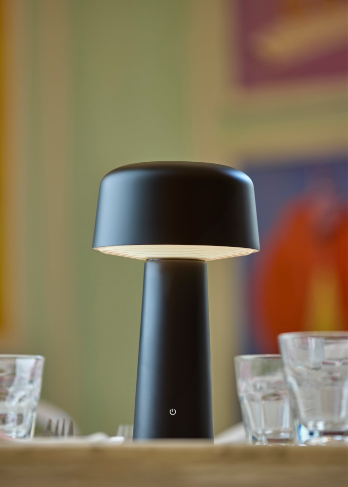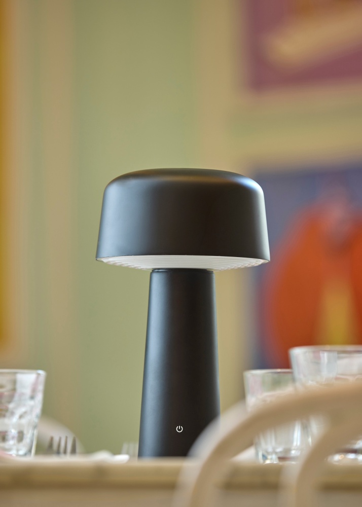 Meet the 4094-01 Lenny Cordless LED Table Lamp, a sleek and functional lighting solution designed to elevate your space. With its chic black finish and sophisticated black metal shade featuring a ribbed frosted diffuser, this lamp adds a touch of modern elegance to any environment. Standing at a compact 10 inches tall, it offers adjustable brightness levels with its 3 Level Touch Dimmer Switch, allowing you to create the perfect ambiance for any occasion. Powered by a rechargeable 1.5W LED, this lamp provides the convenience of portability without the hassle of cords. Plus, with an IPX4 location rating for outdoor use, it's ready to illuminate your indoor and outdoor spaces with style and ease.