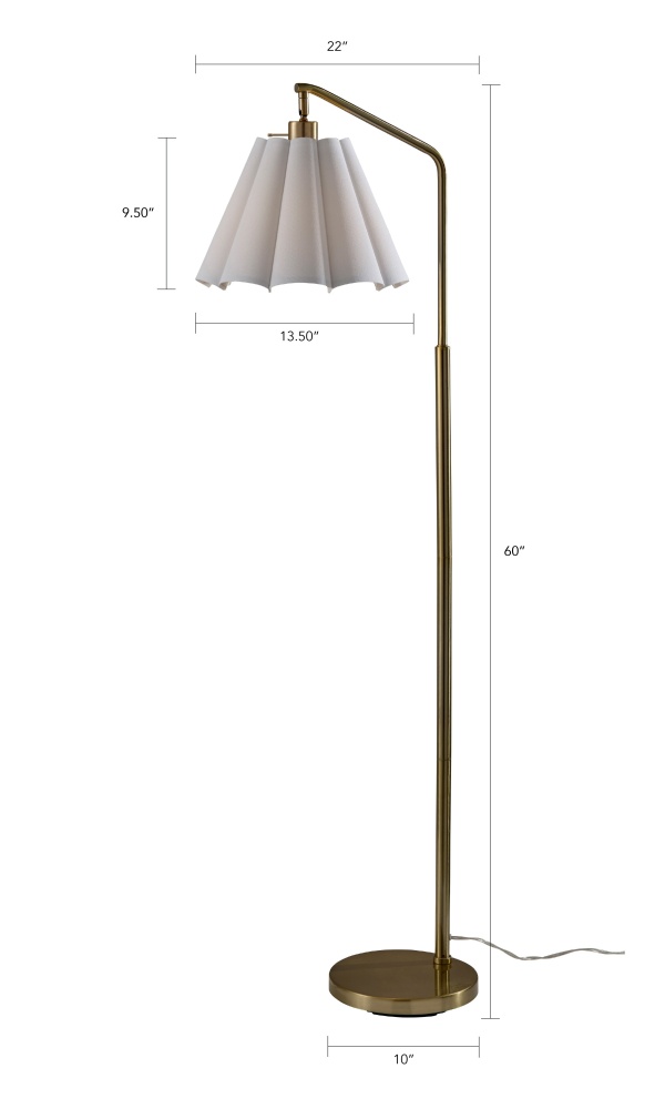 Introducing the 2608-21 Lyra Floor Lamp, a perfect combination of timeless elegance and modern functionality. Featuring a sophisticated antique brass finish and a scalloped white fabric shade, this floor lamp adds a touch of warmth and charm to any room. With a height of 60 inches, it’s ideal for creating ambient lighting in living rooms, bedrooms, or cozy reading spaces. The 100W 3-way rotary socket switch allows for adjustable brightness, making the Lyra Floor Lamp as practical as it is stylish.