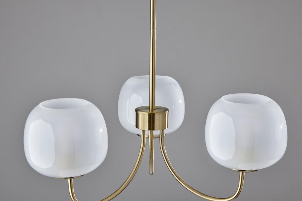 Contrasting Shades: Its three glass shades feature glossy white exteriors for a modern twist, while the frosted interiors diffuse soft and inviting illumination, achieving a harmonious blend of style and function.
