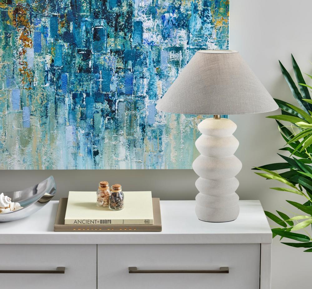 Modern Elegance: The 1640-02 Marcey Table Lamp boasts a sleek matte off-white ceramic base, creating a modern and refined look for your decor.