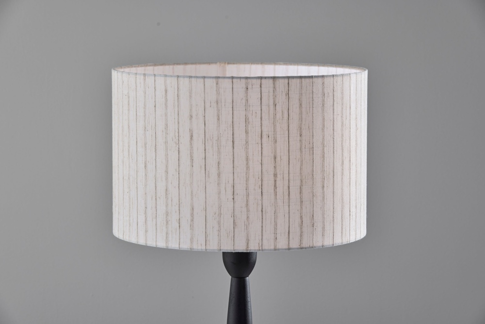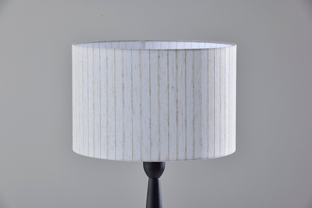 Finish options: Choose from black with beige shade or antique brass with white linen shade.