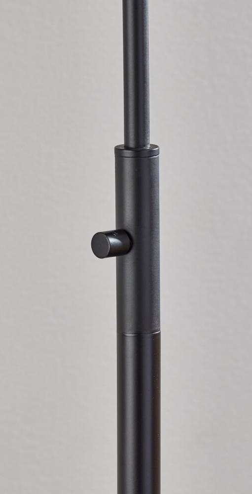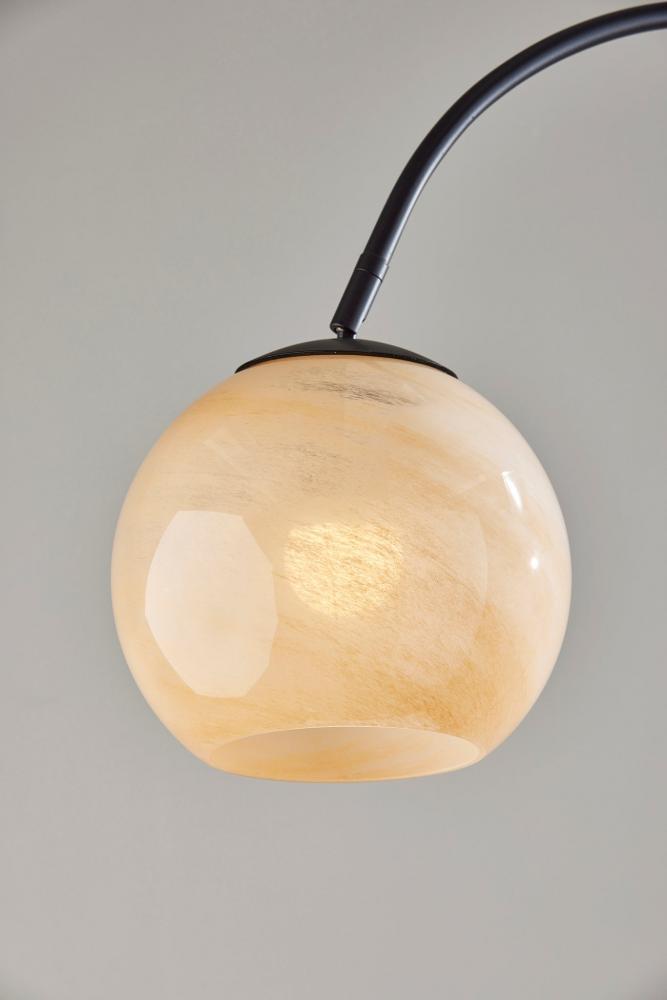 Add warmth and timeless style to your space with the Nolan arc floor lamp. The arcing design of this floor lamp makes it the perfect light source for reading in a recliner or working at a desk, while its slender metal pole and low-profile base make it easy to position near love seats, couches, armchairs, or side tables. A round 13.75" diameter base crafted of black metal supports a pole and slender, gracefully arcing arm. Suspended from the arm is a stunning glass globe with an eye-catching beige swirl pattern that throws warm light from a 60W bulb. For versatile lighting options, an articulation point at the base of the glass globe allows you adjust the shade, directing the light wherever it's needed. With a black rotary switch located on the pole, it is easy to turn the lamp on or off. Complete your décor with the coordinating Nolan floor lamp, desk lamp, wall lamp, flush-mount ceiling light, and pendant light.