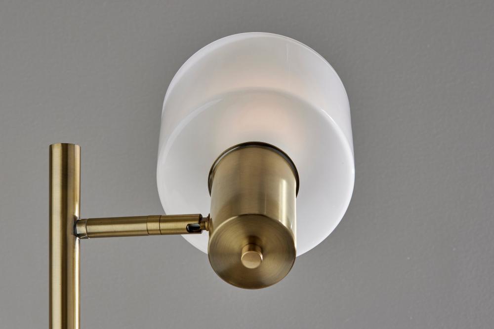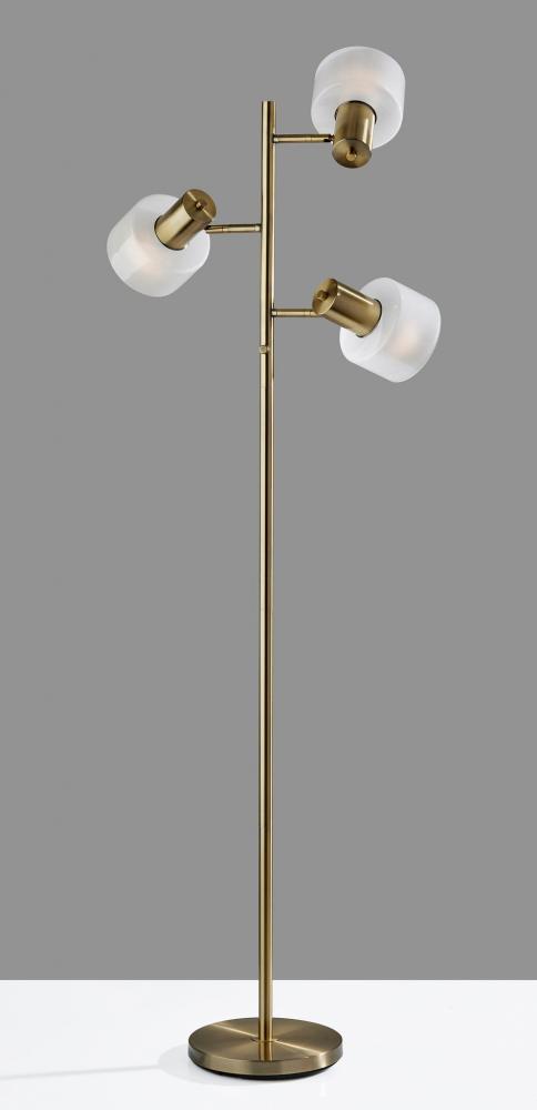 Introducing the 3941-21 Rhodes Tree Lamp, a captivating and versatile lighting centerpiece that seamlessly balances timeless design with modern functionality. This tree lamp features an Antique Brass finish that infuses vintage charm and sophistication into your decor. Its three glass shades create a striking contrast, with glossy white exteriors for a contemporary twist, while the frosted interiors diffuse a soft and inviting glow. The Rhodes Tree Lamp is designed to provide both illumination and style, with three adjustable shades that allow you to customize your lighting to suit your space perfectly.