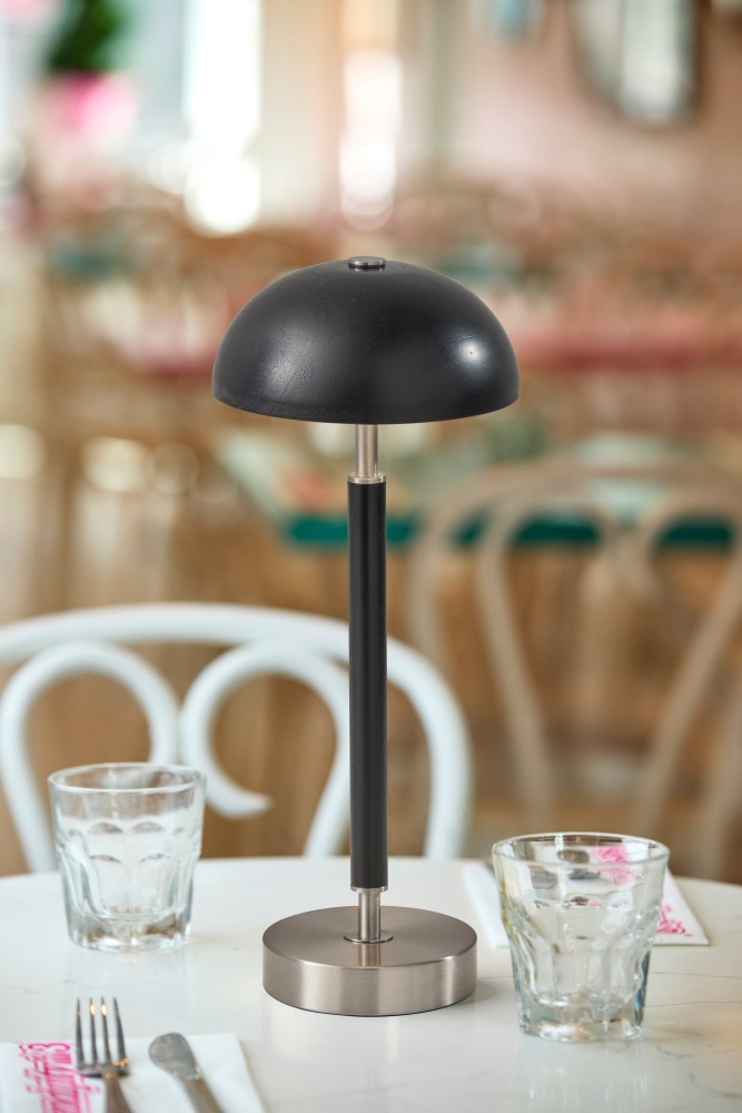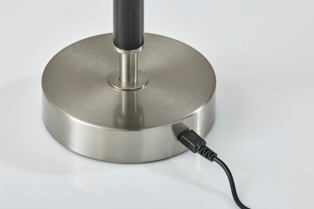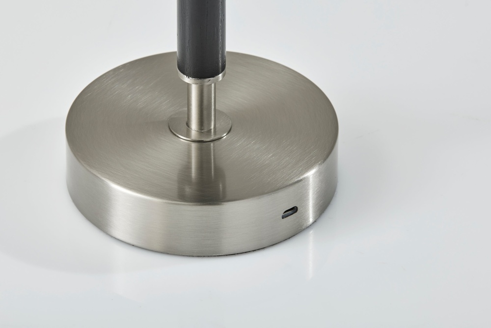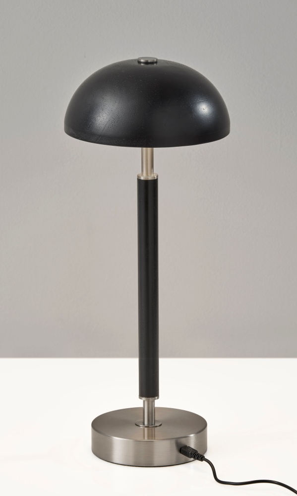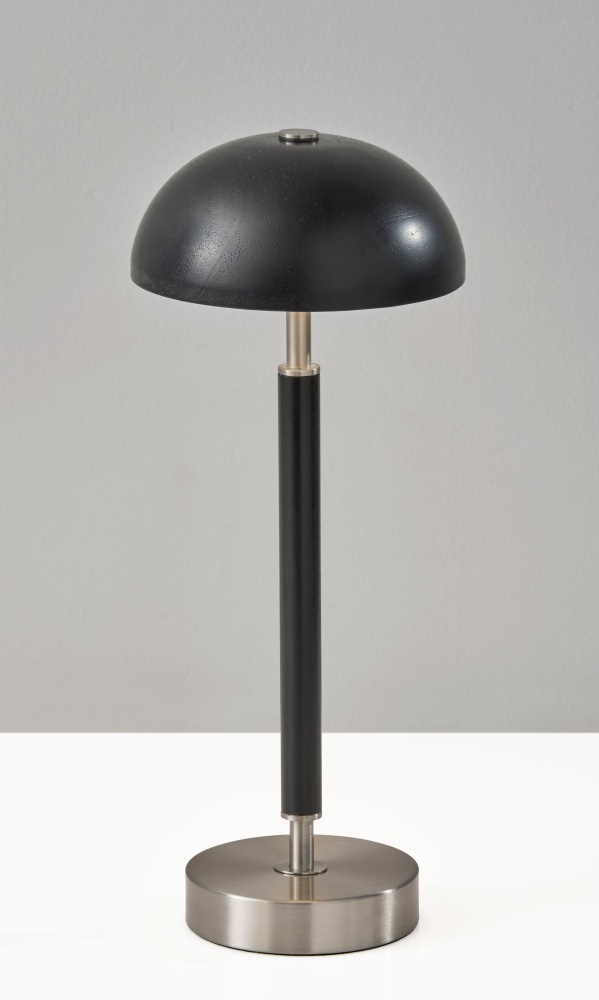 Introducing the 3064-01 Ronny Cordless LED Table Lamp, where modern design meets practicality. With its brushed steel and black wood finish, this lamp adds a touch of contemporary style to any room. The black wood dome shade complements the sleek finish, providing a sophisticated contrast. Standing at a height of 14.625 inches, it's the perfect addition to desks, nightstands, or side tables. Equipped with a convenient 3 Level Touch Dimmer Switch, you can easily adjust the brightness to suit your needs. Powered by a rechargeable 1.5W LED, this lamp offers energy-efficient lighting without the hassle of cords. Portable and rechargeable, it provides versatile illumination wherever you go.