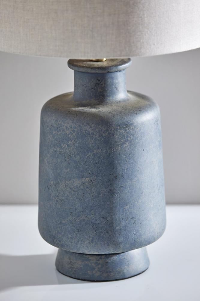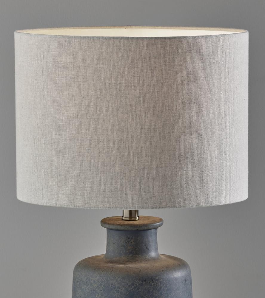 The Skylar Table Lamp illuminates your space with subtle texture and dimension with its jug-shaped ceramic base featuring a weathered dark grey finish. The lamp is topped with a soft, taupe textured fabric shade. A 100W bulb (not included) is easily turned on or off with a rotary socket switch.