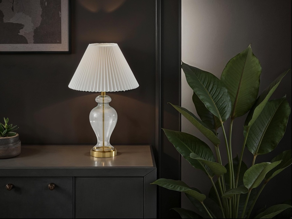 Soft illumination: Off-white pleated fabric shade diffuses light gently, creating a warm and inviting atmosphere.
