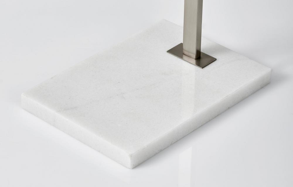 The white marble base creates a polished look while providing sturdy support to the lamp.