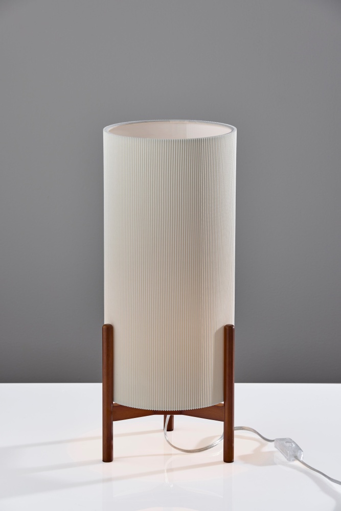 Elevate your space with the timeless charm of the Sonora Table Lantern. Featuring a warm walnut wood tripod base and a tall, cylindrical off-white knife-pleated fabric shade, this 19.75" lantern-style lamp blends classic texture with modern design. Perfect for accent tables, nightstands, or reading nooks, the Sonora emits a soft, ambient glow while adding a sculptural element to your decor. The simple on/off in-line switch makes it easy to use, offering both style and function in one elegant package.
