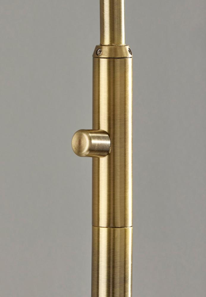 The Sputnik arc lamp's innovative design exudes retro-modern style. Crafted of antique brass and featuring the quintessential mid-century modern Sputnik silhouette, this 83" tall and 39.5" deep lamp is a dramatic addition to living rooms, dining rooms, or bedrooms. The tall, slender antique brass pole is topped by a gracefully arcing stem, making this lamp an ideal choice behind or beside sofas, recliners, and love seats. Suspended from the stem is an antique brass chandelier-style fixture with nine short rods that each terminate with a 40W vintage Edison bulb (included). As the rods extend in varying directions, the lamp illuminates your entire space with warm amber light. The lamp is anchored by an 11" x 15" rectangular base with antique brass finish, while it is operated by a rotary switch located on the pole. For a polished look, the arc lamp is powered by a 5' cord covered in gold fabric. For smaller rooms and a linear silhouette, the Sputnik design is also available as a slender, 67.5" tall floor lamp.