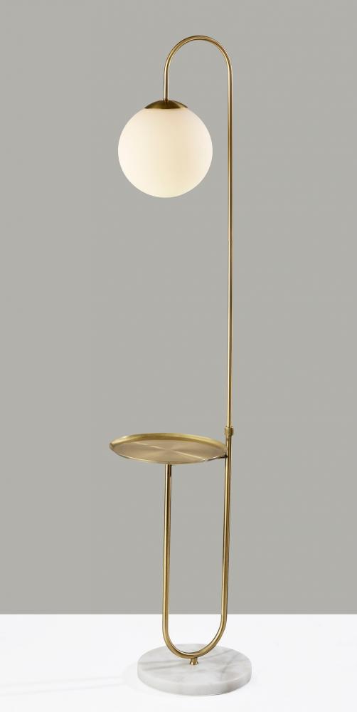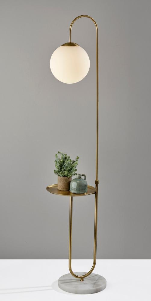 Designed for convenience, this lamp includes an on/off in-line foot step switch, providing effortless control over the lighting. What sets this lamp apart is its integration of a 23-inch height antique brass table, offering both style and functionality. The Terra Shelf Floor Lamp seamlessly combines form and function, making it the perfect choice to illuminate, decorate, and elevate your interior decor.