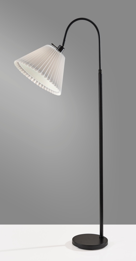 Introducing the SL2614-01 Thalia Floor Lamp, a perfect combination of modern elegance and classic charm. Featuring a sleek black finish with a gracefully curved pole, this floor lamp adds style and sophistication to any room. The white knife-pleated tapered shade provides a warm, diffused glow, ideal for creating an inviting atmosphere in living rooms, bedrooms, or reading nooks. Standing at 58.5 inches tall and equipped with a 100W on/off rotary socket switch, the Thalia Floor Lamp brings both functionality and elegance to your home.