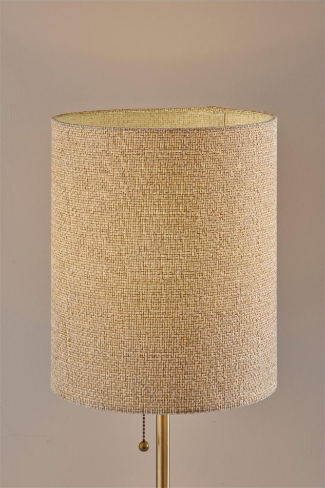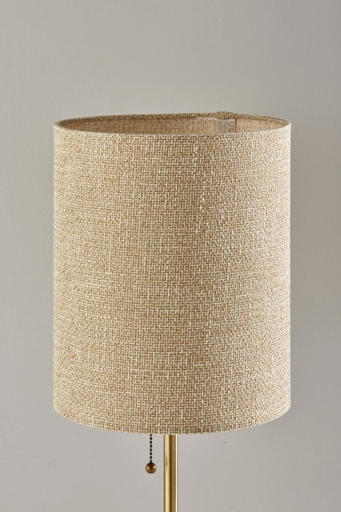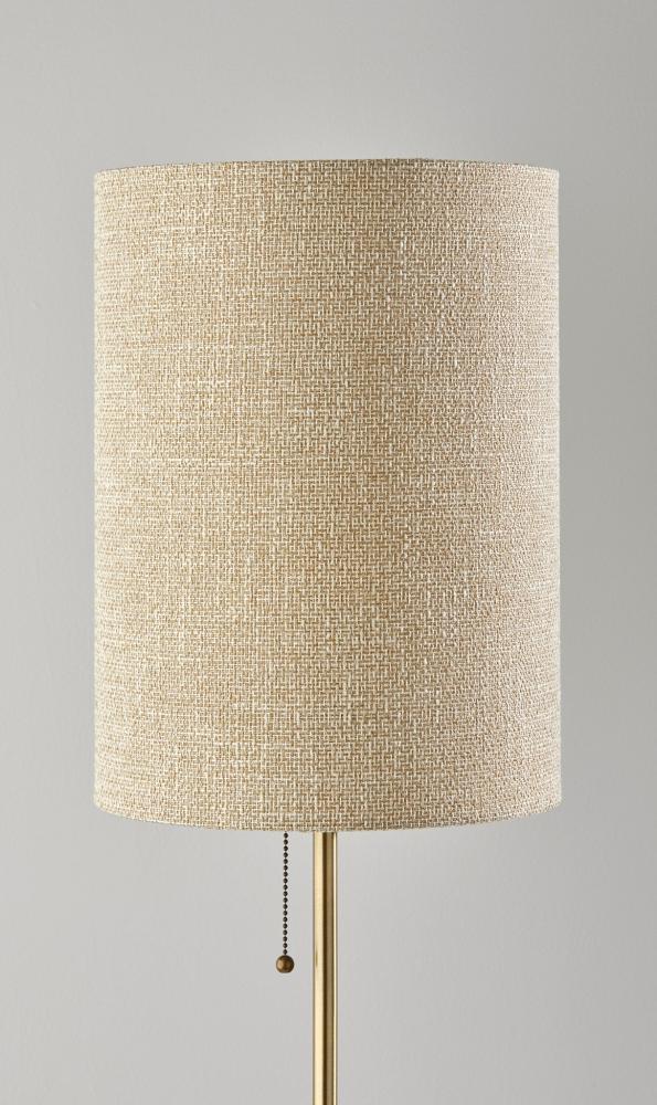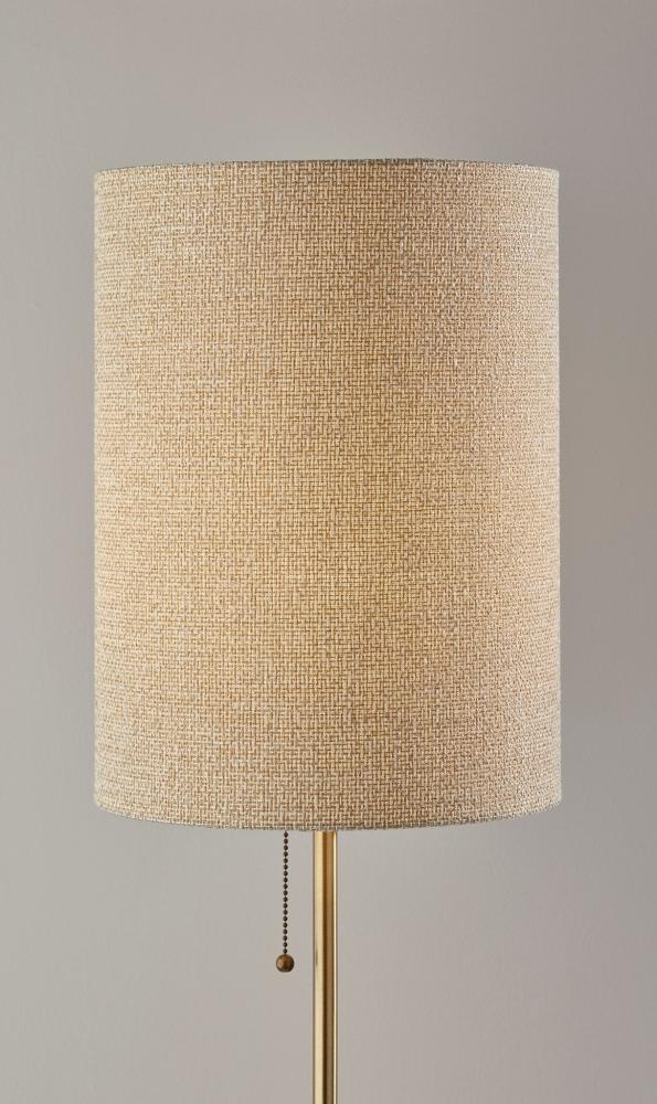 Featuring a rich blend of materials, the Tucker table lamp adds refinement to desks, nightstands, and accent tables. A tapered cylindrical black marble base is an elegant accent to the simple silhouette of the lamp and supports a long tube with antique brass finish. Topping the lamp is a beige woven fabric drum shade that softly diffuses the light from a 100W bulb. Complete your décor with the coordinating Tucker floor lamp.