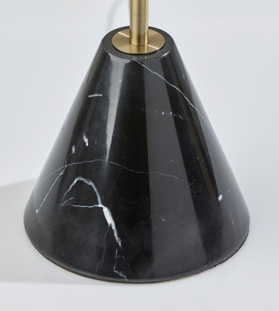 The shapely base fashioned of black marble adds a decorative flourish to the simple design.