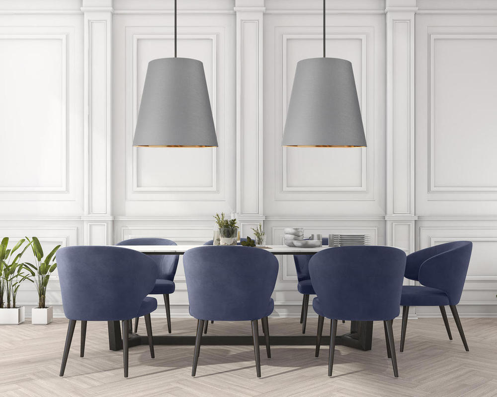 Elegant and softly tapered linen drum shades add a stylish and classic statement to any interior. The Calor collection exhibits a luminous gold interior combined with 1% linen exterior- offered in soft neutral tones of White, Black and Gray. Available in 2 sizes and offered in both Vintage Brass and Urban Bronze finishes.