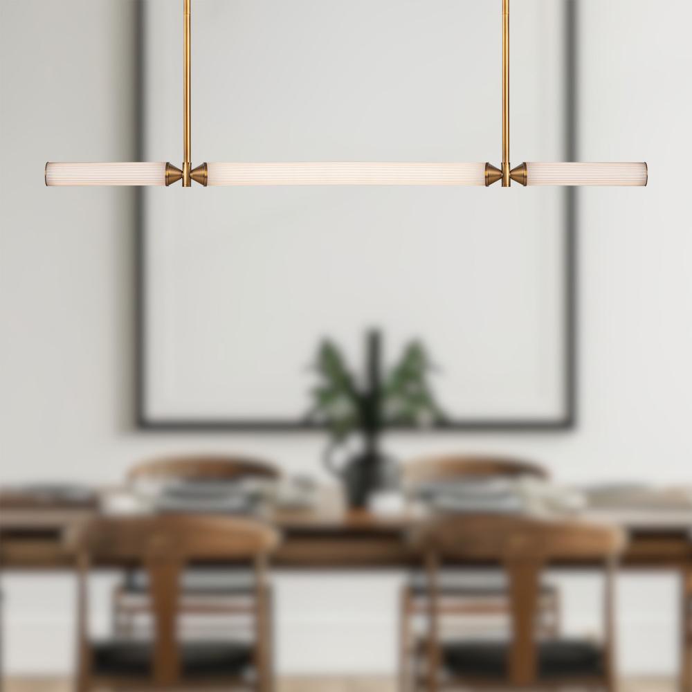 Edwin 48-in Vintage Brass/Frosted Ribbed Glass LED Linear Pendant
