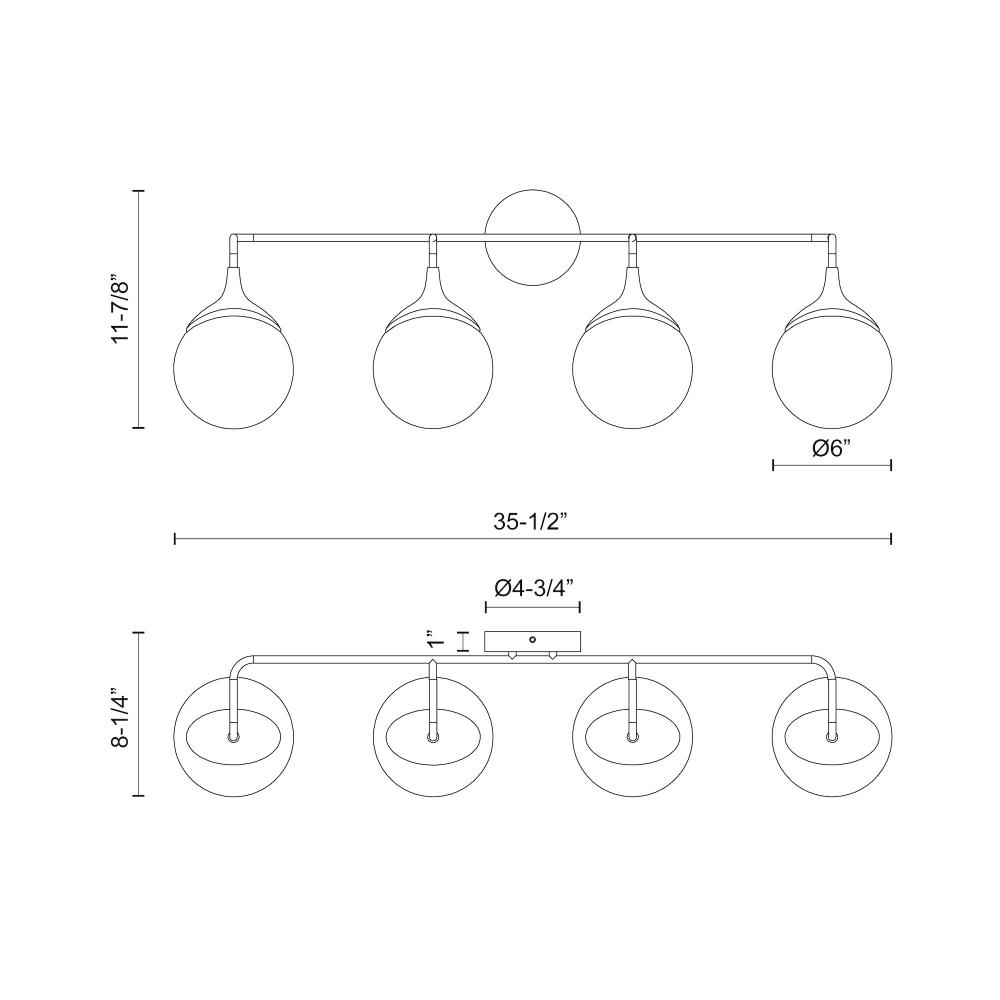 Nouveau 35-in Aged Gold/Opal Matte Glass 4 Lights Vanity by Alora Lighting