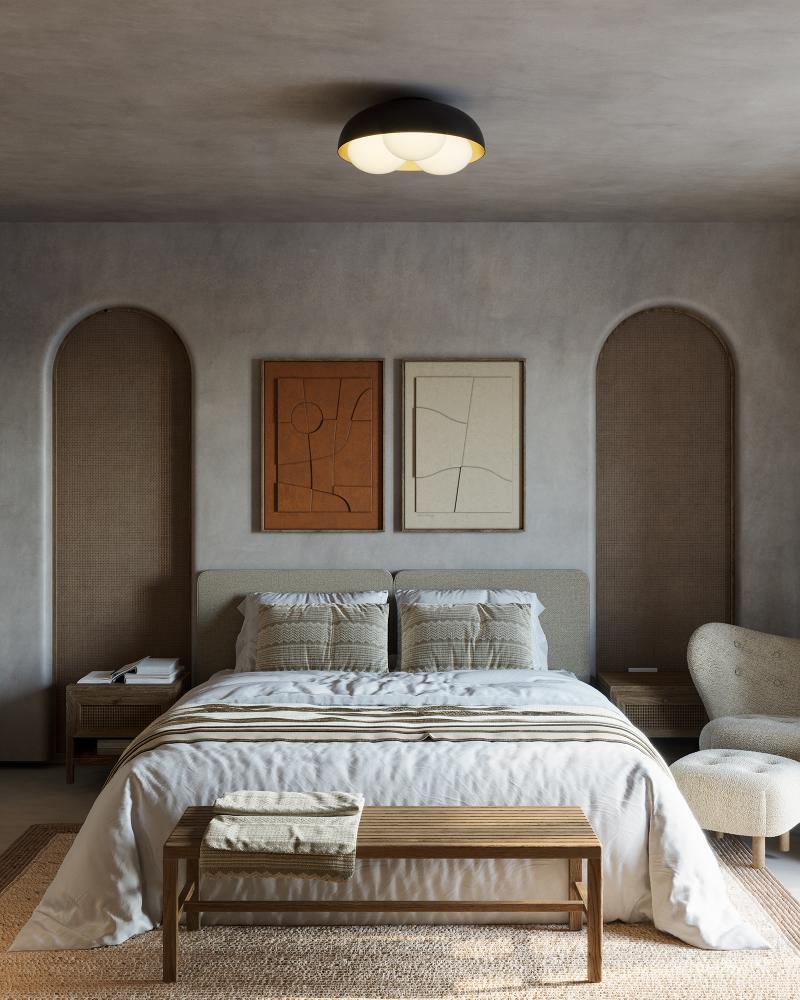 The Robyn lighting collection is inspired by the delicate beauty of a bird's nest. It features a simple bowl dome shade with three opal glass diffusers, resembling the eggs of light. This design adds a touch of decorative simplicity, bringing warmth and charm to any space.