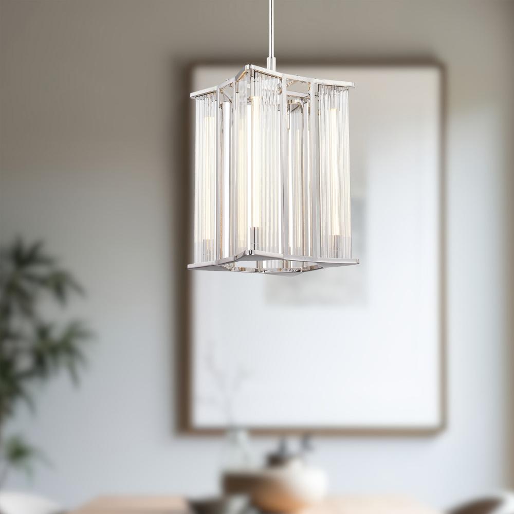 Sabre 11-in Polished Nickel/Ribbed Glass LED Pendant