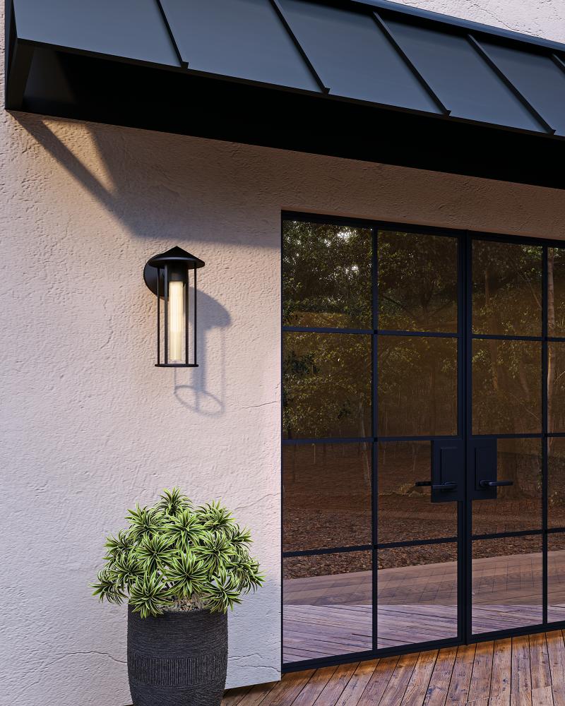 Tenko 12-in Black/Glossy Opal Glass 1 Light Exterior Wall