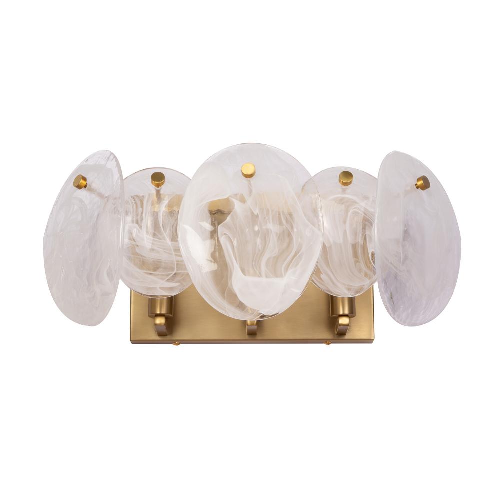 The Lily Collection exudes a delicate charm, captivating with its Murano-style glasswork in a wispy white finish. Each circular panel dances with subtle elegance, reflecting light in a manner that feels both luxurious and inviting. Complemented by a brushed brass frame, the design radiates a poetic blend of elegance and allure. This chandelier casts a spell of enchantment, illuminating your space with a touch of dreamy opulence. A great addition to any bathroom or vanity area