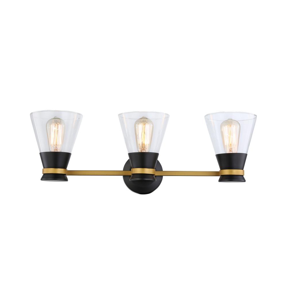 The Kanata collection by designer Kevin Kraemer is unique, stylish and soft. This collection features clear tapered glassware that is held by thin arms that wrap around the cups to finish off the design. The matte black cups are complimented with a smooth brass finish on the arm banding. 3 light version shown - single and four light versions also available. (Alternate colour option available - Polished nickel and black)