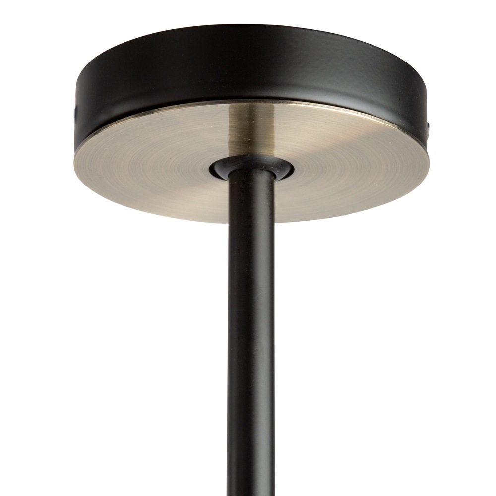 Modular in design, the "Tribeca" series elegantly adopts the beauty of retro Edison bulbs (not included). This version has a trendy two tone color factor. The frame is matte black while the socket cover, arm connectors, and part of the canopy are in plated satin brass. An instant classic which brightens up any area. 6 light chandelier shown - other size also available. Comes with hang straight for sloped ceilings and multiple rods for desired height.