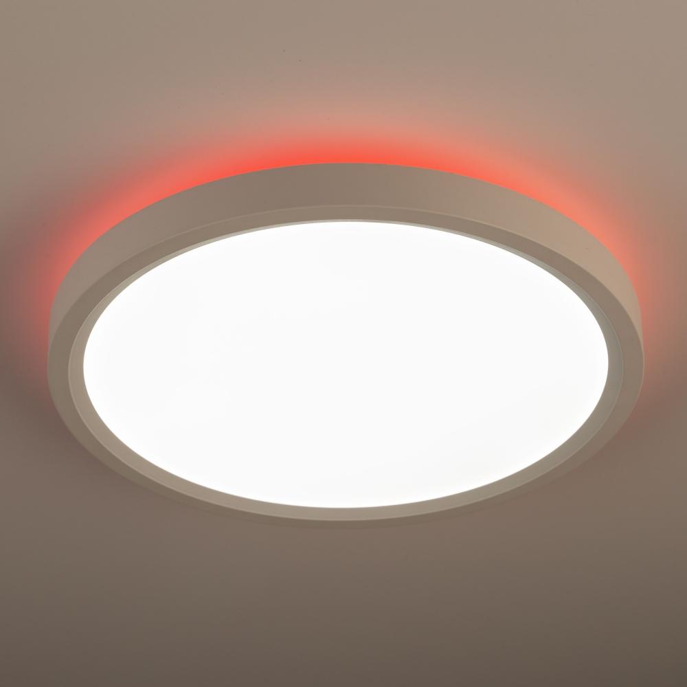 Part of the ARTCRAFT EZ-Link collection of smart enabled lighting devices, the Smart LED Flushmount has unlimited functionality. To start off the design is superurb with a very thin profile and clean white casing. This flushmount has a dual light system. It has a configurable main lighting system, and on the back it has a secondary light source that can be set to any color of the rainbow. Since this unit is smart enabled it can be controlled from any mobile device or smart speaker. Functionality from your mobile device is endless – set timers, dimmers, colors, and more from anywhere in the world since it works via wifi (no hub required).
