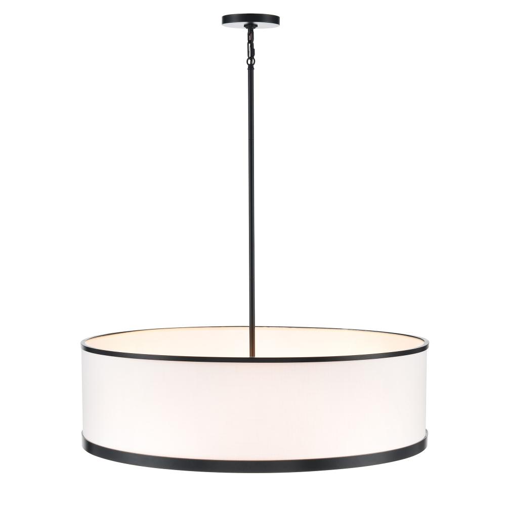 This elegant chandelier from the “High Street” collection, designed by Kevin Kraemer, radiates understated elegance. The hardback linen shade, in a soft eggshell white hue, casts a warm, inviting glow, perfect for elevating any space. Encased in sleek black framing metalwork, the design balances contemporary charm with understated luxury. This model comes with extra rods for any height preference.