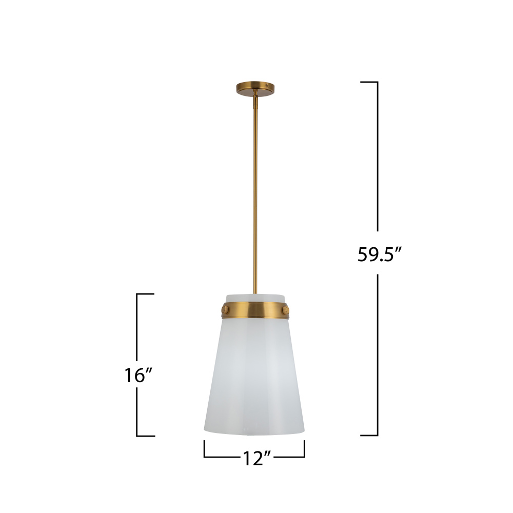 This pendant from Kevin Kraemer’s Dahlia collection is a harmonious blend of understated elegance and thoughtful craftsmanship. Its soft, white glassware radiates a gentle glow, while the rich brass banding, adorned with intricate knurl knobs, adds a touch of refined character. Perfect for any kitchen, island, or dining room