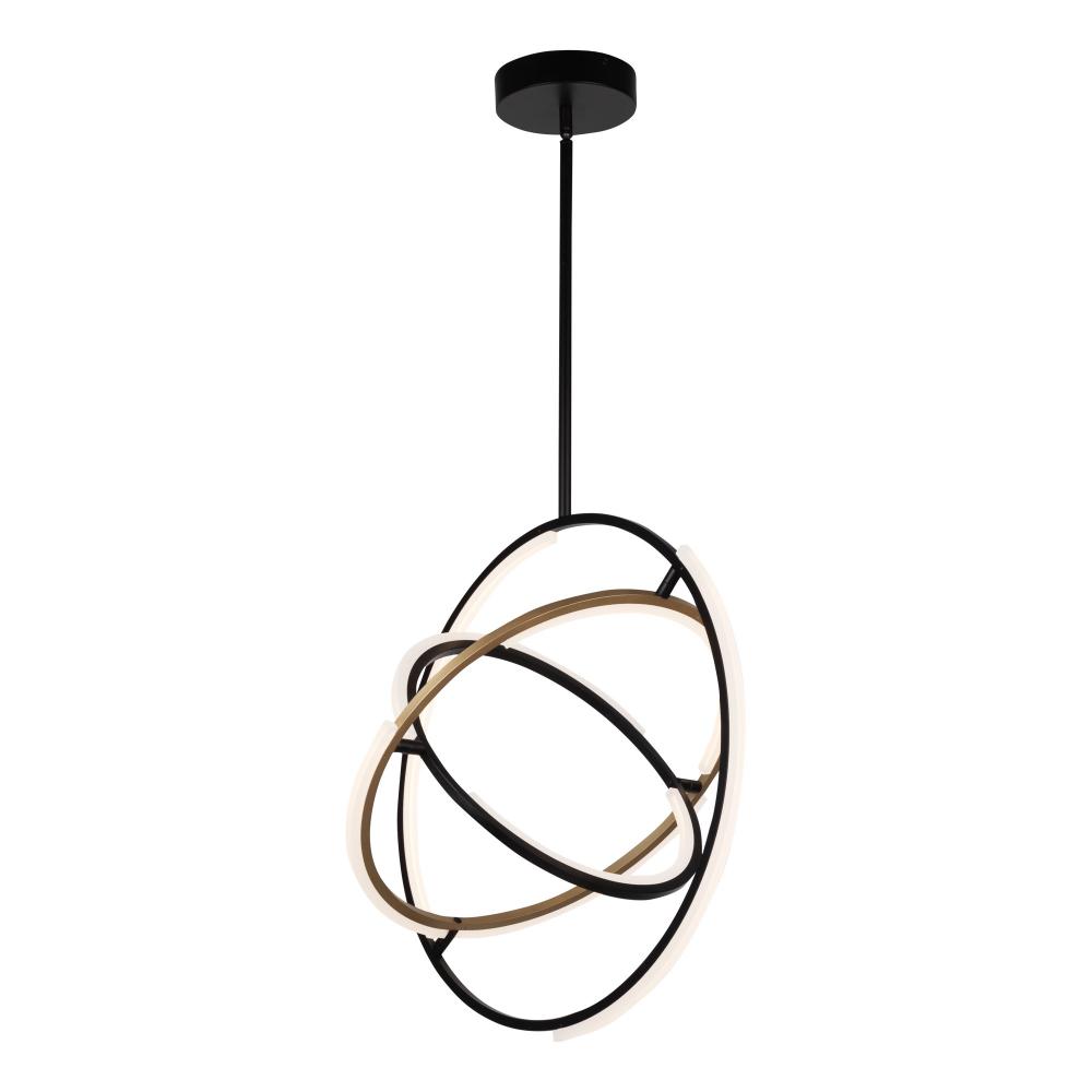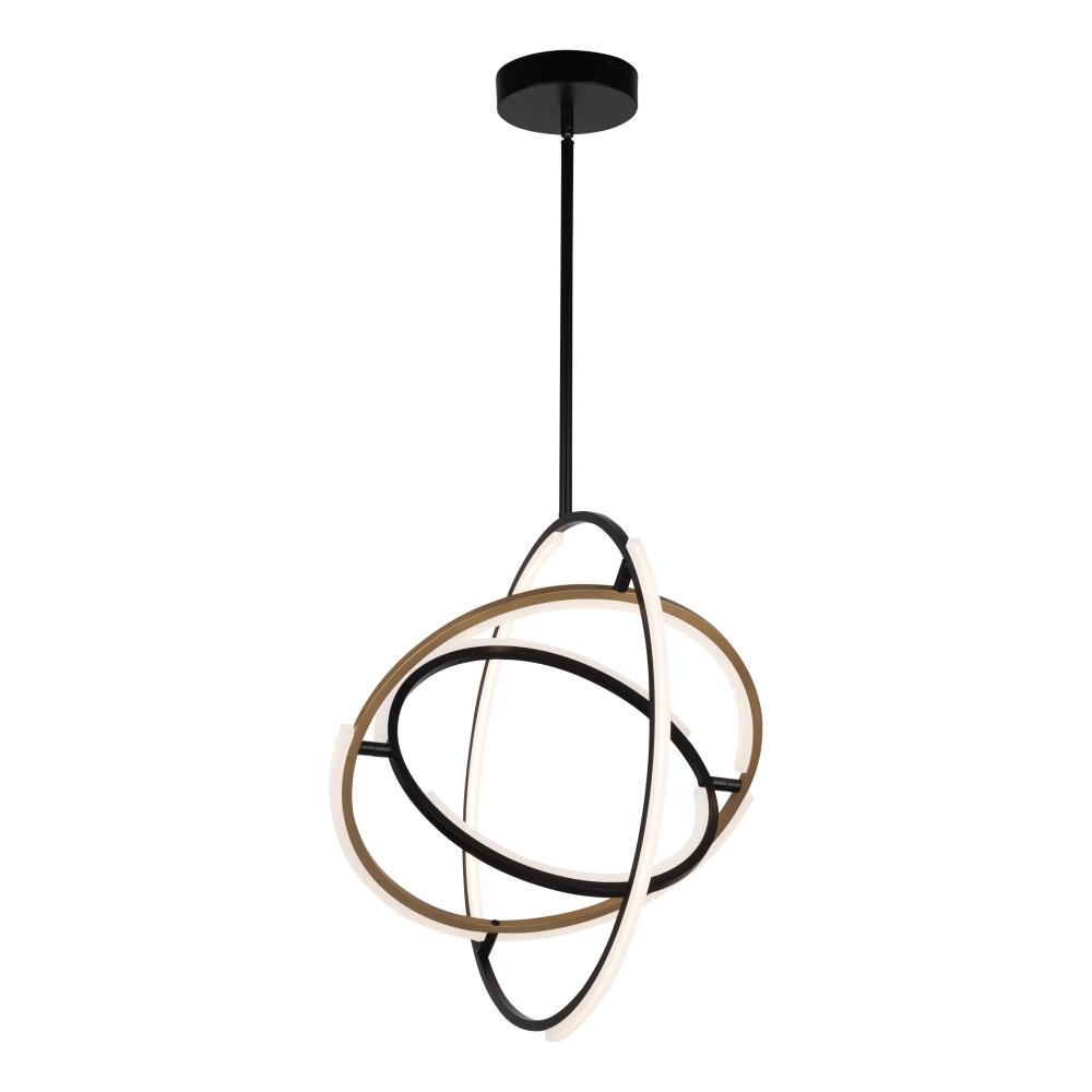 Designed by Kevin Kraemer, these orbs from the Trilogy collection are stunning. Black frames with a touch of brass - illuminated by LED on certain parts of the framing. Also these orbs can be adjusted to your desired position since the spheres can be rotated. Chandelier model shown.