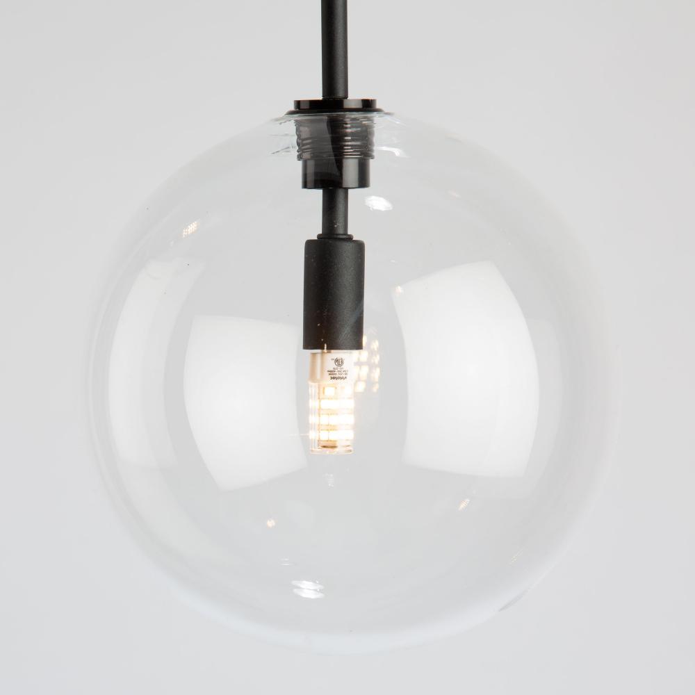 From designer Steven Sabados of S&C, the Pinpoint collection hits that 'simple is more' trend. This series features floating clear glass sphere, textile wiring coverings, and is finished in a rich black. Sometimes simple is more!