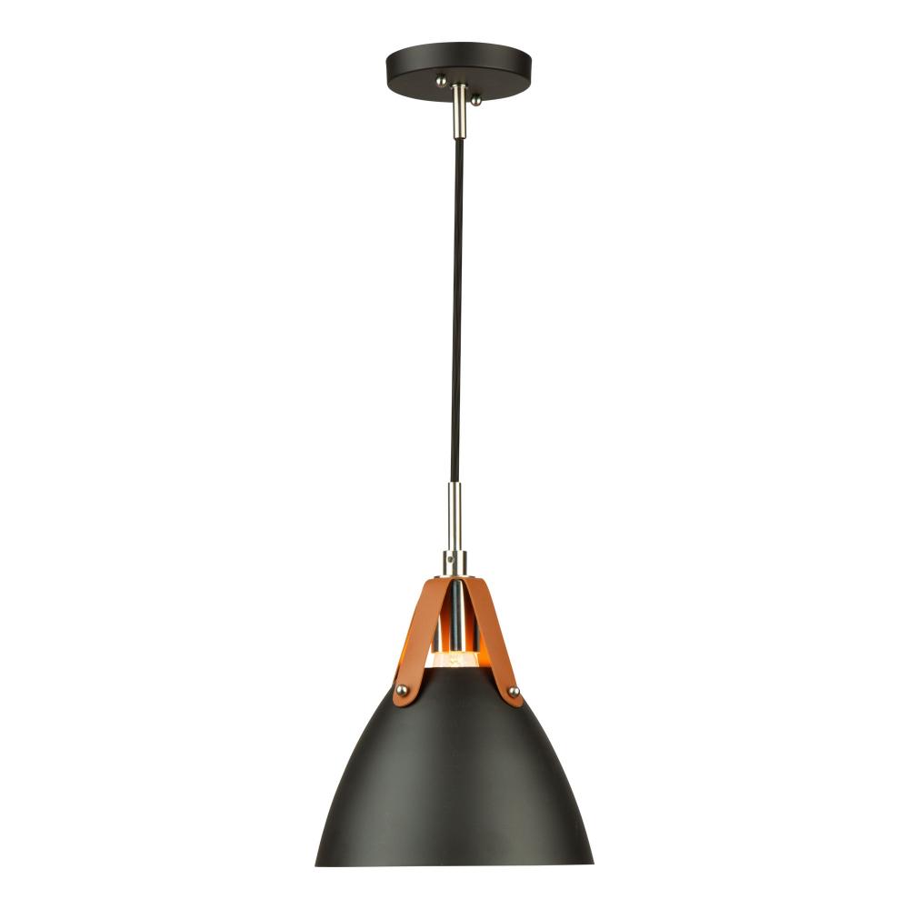 From designer Steven Sabados of S&C, the Tote collection is a definite fashion trend for your home or office décor. The matte black metal shades are suspended to the wiring with leather straps. The interior of the shades have a super reflective white finish for maximum light functionality. Two finishing touches for this design are the polished nickel accents, and the textile black wiring coverings.