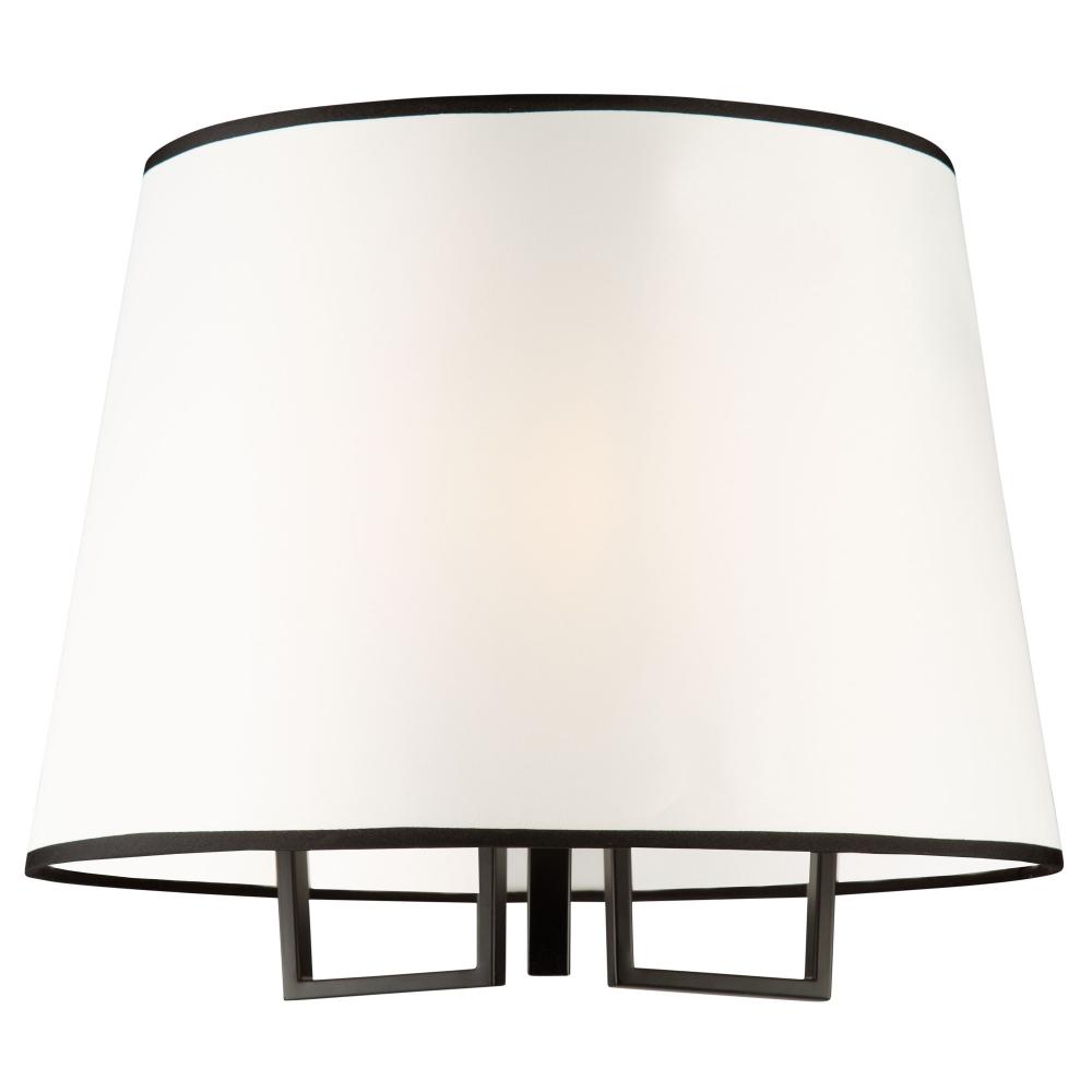 From the S&C design firm, with strict direction from Steven Sabados, the Coco Collection features a transitional frame which has flat type arms. The frame is finished in a rich matte black, and has harvest brass accents. The hardback white linen shades are complimented with upper and lower black trims to finish off the design. Make a statement in your home.