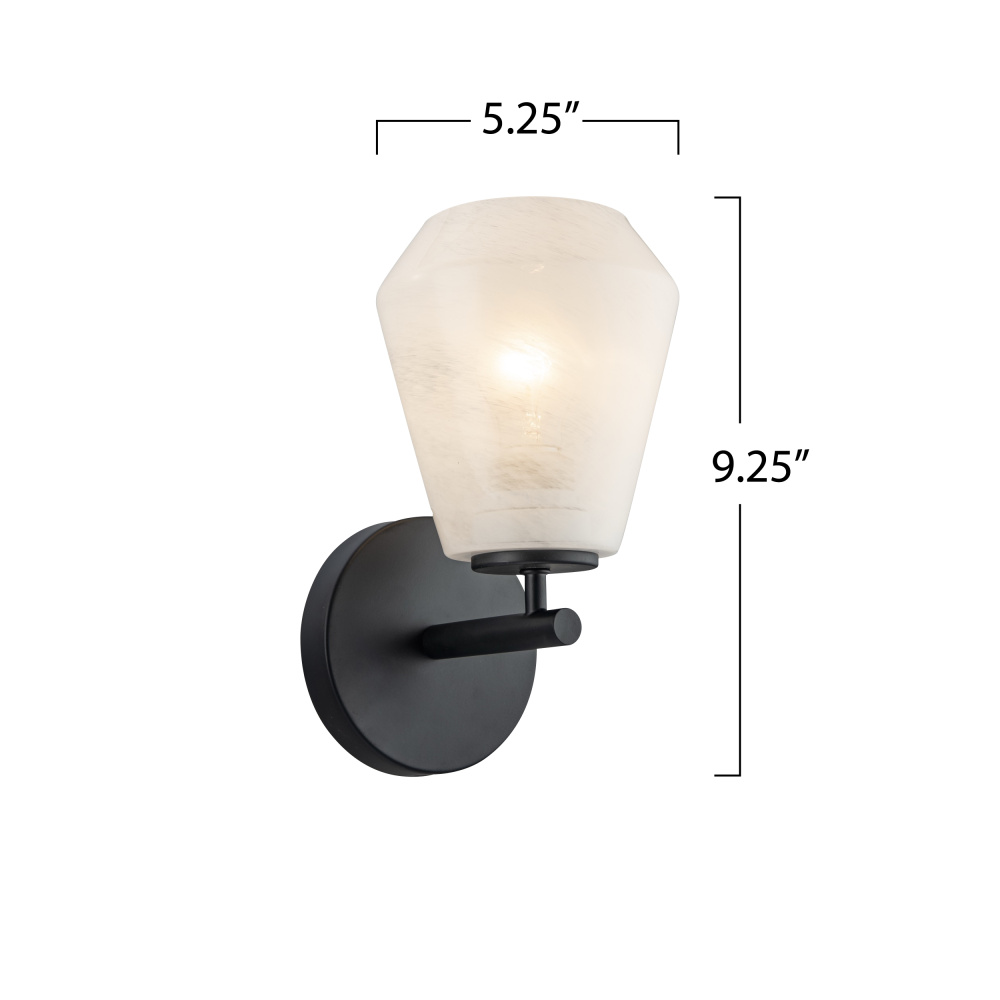 Step into timeless elegance with the wall sconce from the Brooke Collection. Its minimalist black frame exudes modern sophistication, perfectly paired with the ethereal “Wispy White” glassware that gently diffuses light like a soft cloud at dusk. Whether gracing your hallway, vanity, bedroom, or living space, this sconce casts a warm, inviting glow, creating an ambiance of understated romance and refined charm.