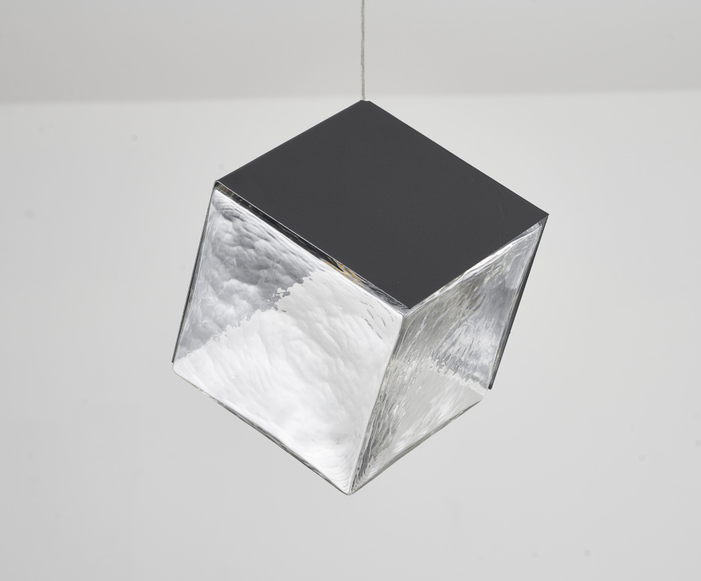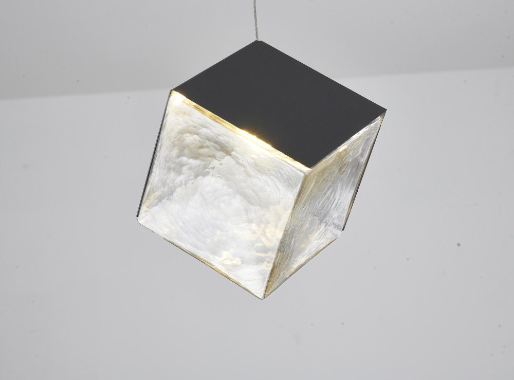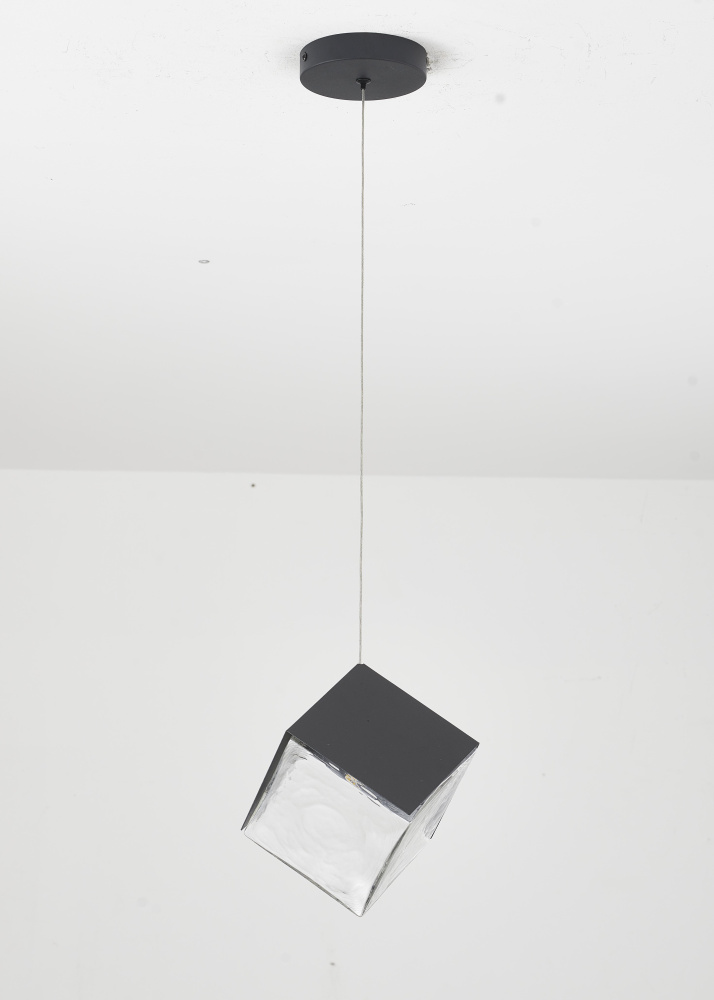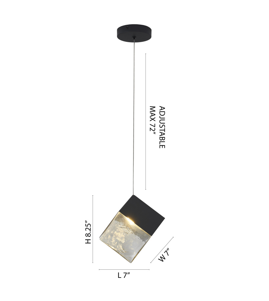 1-Light Black Cubed Pendant With A Clear Distorted Glass Shade