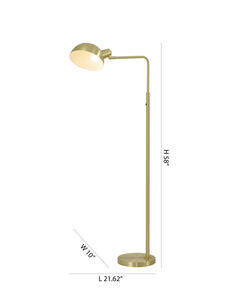 1-Light Satin Brass Metal Floor Lamp With A Metal Shade by Bethel International Canada