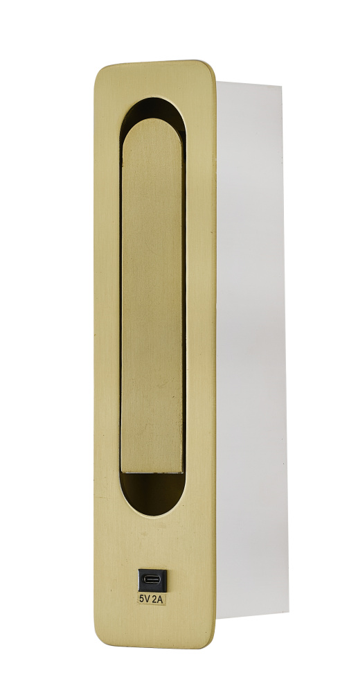 1-Light Satin Brass Metal LED Wall Sconce With One USB Port And A Clear Frosted Lens by Bethel International Canada