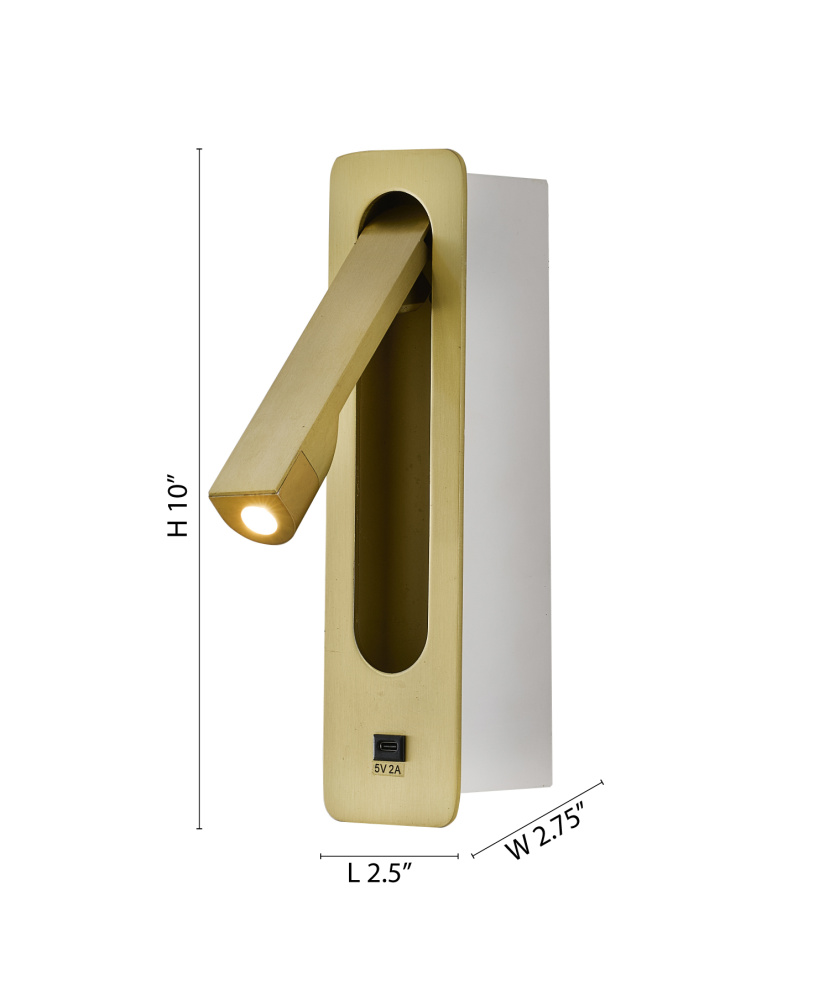 This LED wall sconce is a transitional and sleek lighting fixture that adds a touch of sophistication and elegance to any room. The satin brass metal frame provides a warm and inviting look, while the clear frost lens adds a touch of softness and subtlety. The USB port allows for convenient charging of devices, making it a great option for bedroom. The 1.5W LED rating means it is energy-efficient and provides a bright and warm glow, with a color temperature of 3000K that is similar to traditional incandescent lighting.